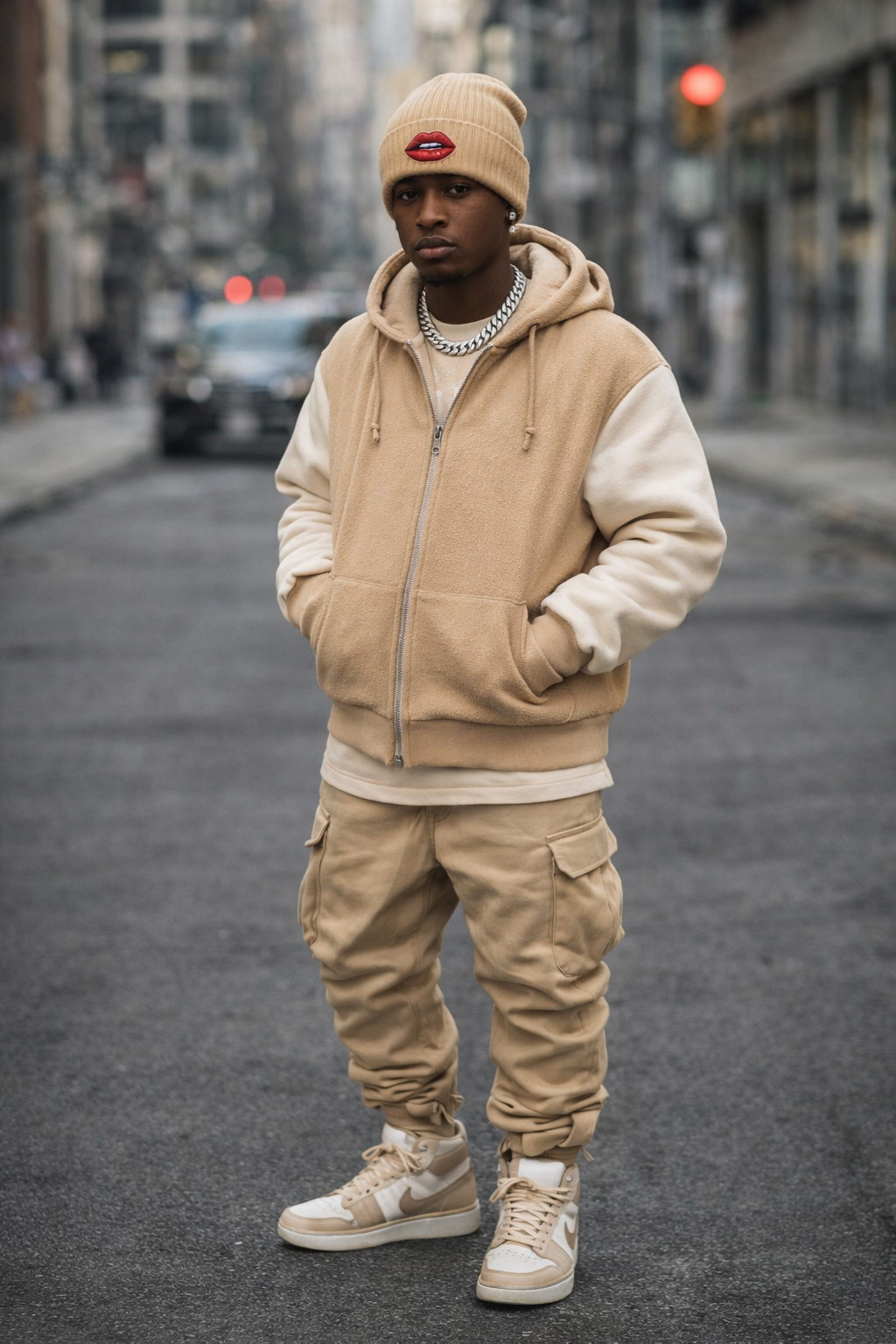 This ribbed knit beanie brings a bold, playful edge to cold days. The cuffed silhouette and double-layer knit trap warmth while keeping a slim, street-ready profile. A small embroidered lip motif adds a cheeky, confident accent — the kind of detail that catches compliments on city walks, late-night coffee runs, or festival evenings when the air turns crisp. The recycled polyester blend gives the hat a soft, slightly structured feel and makes it an easy everyday piece that layers naturally with coats, denim, and leather. Lightweight enough to tuck into a bag, warm enough to pull over your ears, it’s made for people who like their winter wear with a wink and a little attitude.