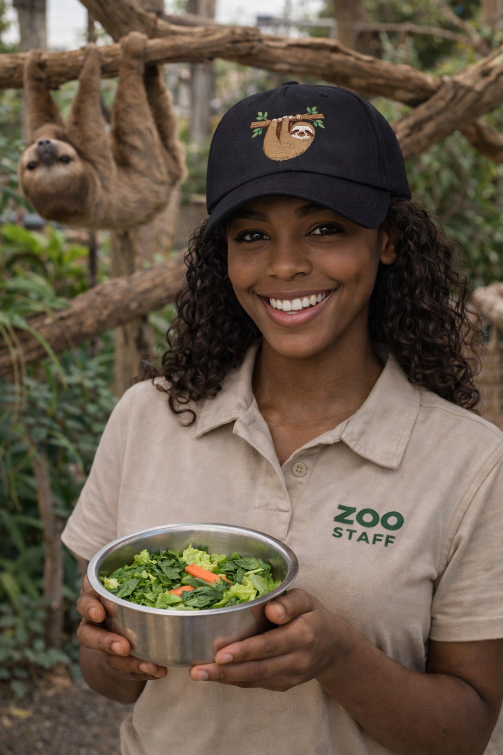 - Embroidered sloth design centered on the front panel